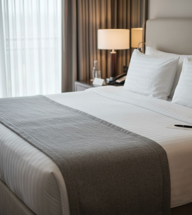 Textiles de Alta Gama: Suministramos sábanas, fundas, toallas, mantelería y cualquier textil necesario, siempre con tejidos de calidad superior diseñados para el uso intensivo.
